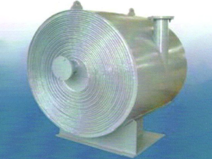 2、在殼體上的接管采用切向結(jié)構(gòu),局部阻力小,由于螺旋通道的曲率是均勻的,液體在設(shè)備內(nèi)流動(dòng)沒有大的轉(zhuǎn)向,總的阻力小,因而可提高設(shè)計(jì)流速使之具備較高的傳熱能力。